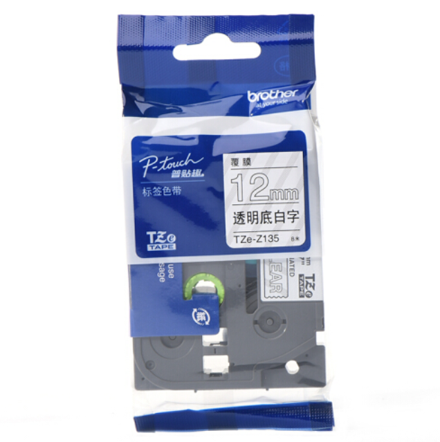 兄弟(brother)TZe-Z135 12mm透明底白字标签色带