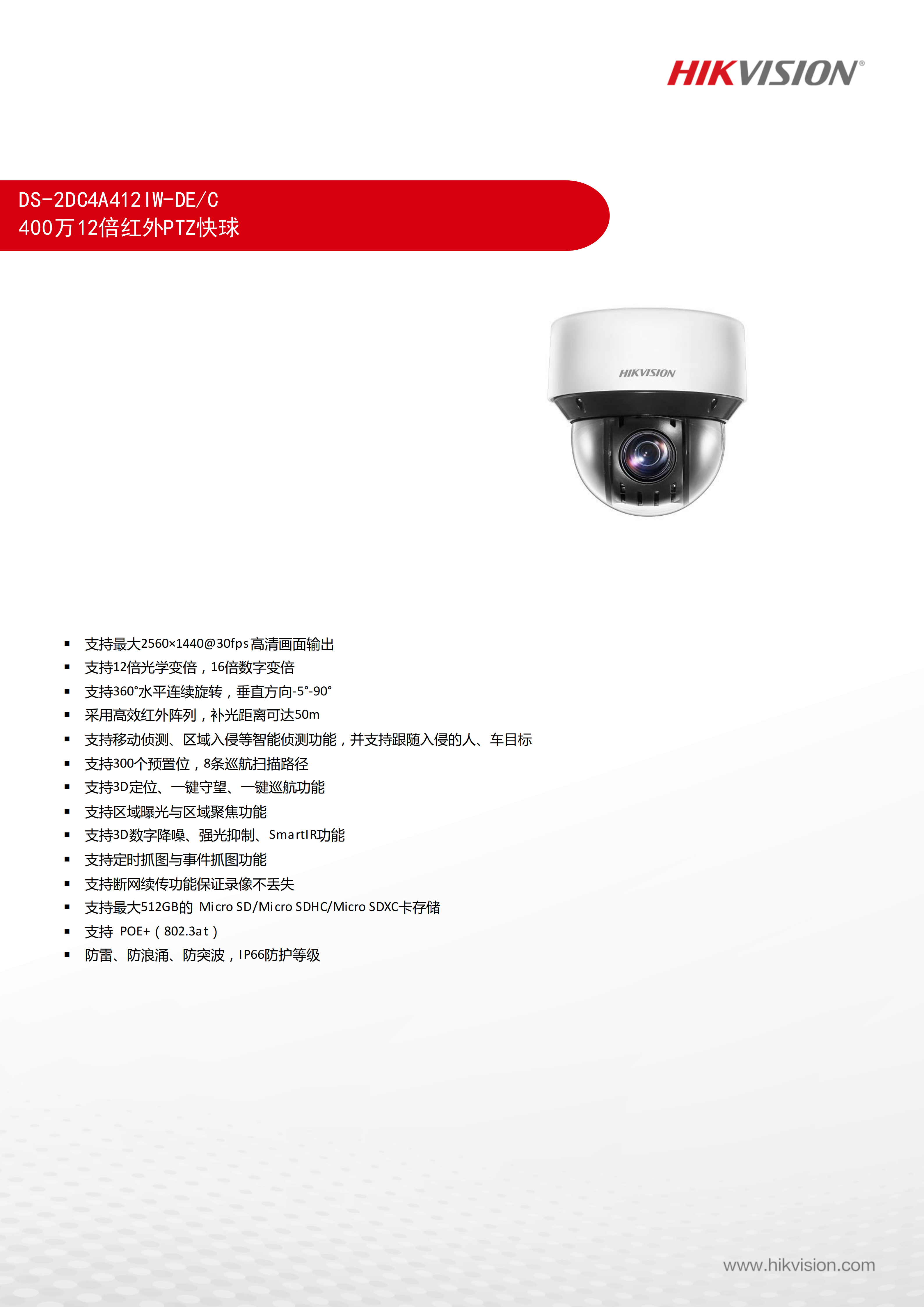 海康威视/HIKVISION DS-2DC4A412IW-DE/C 监控摄像机
